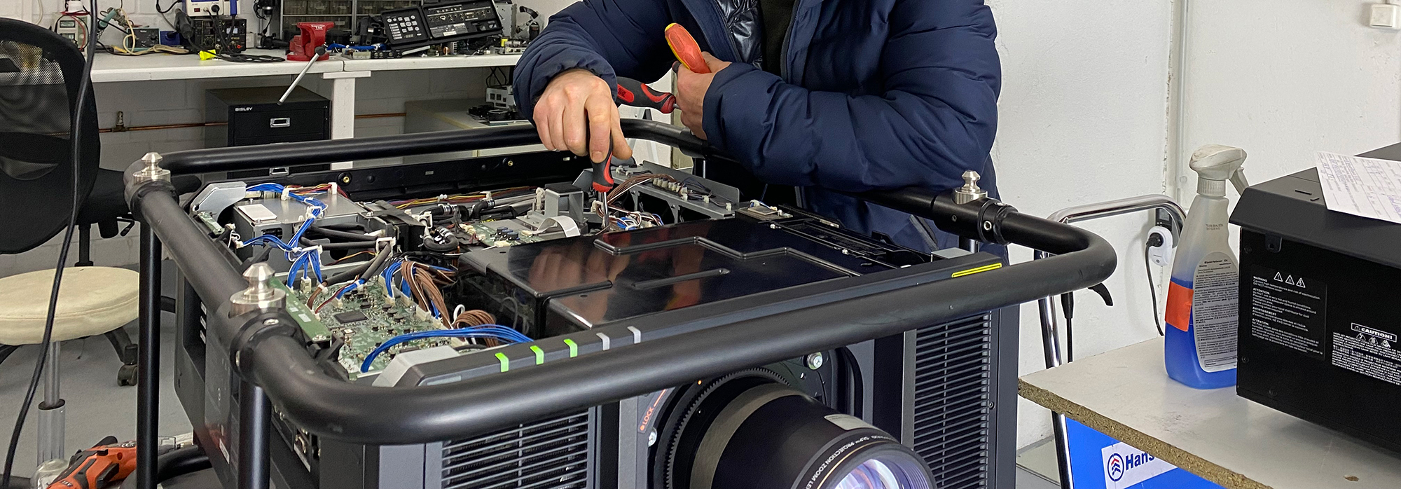 Our workshop and technicians have enabled the refurbishment of more than 17.000 projectors and are still counting. For some years now we also offer external repairs and maintenance, thus enabling you and your projectors the longest possible and failure-free life cycle of your equipment. We are looking forward to service your equipment and give it some LOVE.