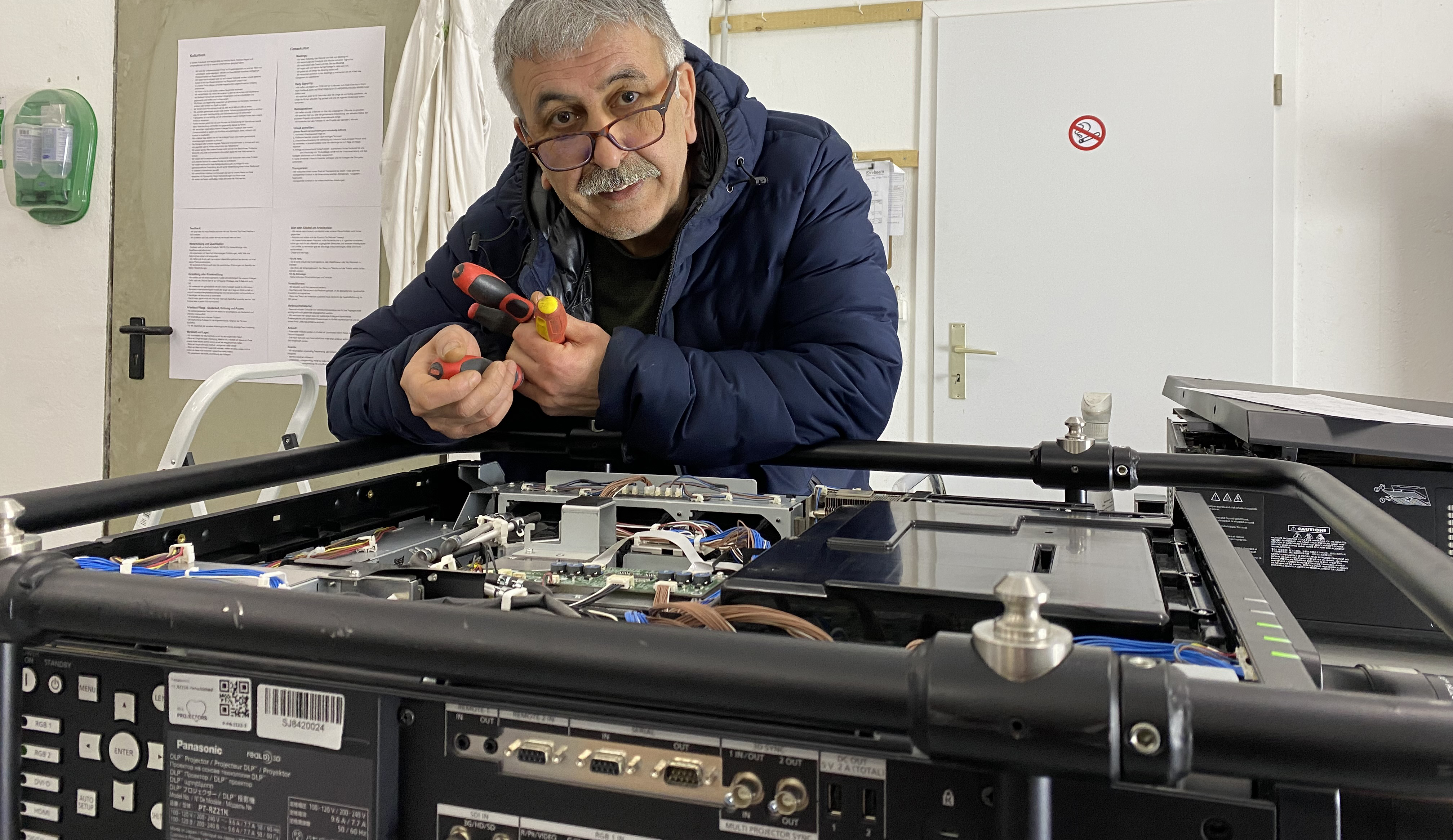 In the last 10 years more than 17.000 projectors have been repaired, remanufactured and disassembled in our workshop. Through this work we know the products we sell and rent even on component level. Our clients benefit from this because we know all the advantages and disadvantages of each projector in terms of durability, repairability, maintenance cycles, energy consumption, etc. and include this knowledge in our individual advice. Our team of projector specialists and enthusiasts will be happy to advise you on your project and suggest all suitable projectors for your needs. We are happy and proud that our unique sustainable concept also allows us to keep an independent opinion away from the industry and to collect our own opinion and experience with all the products in our company. For example, you can also chat our colleagues from the workshop about the equipment and learn from our experience with the projector model in maintenance, repair and dry hire. We would also be happy to provide you with demo units for an on-site test or a shoot-out at our premises in Berlin.